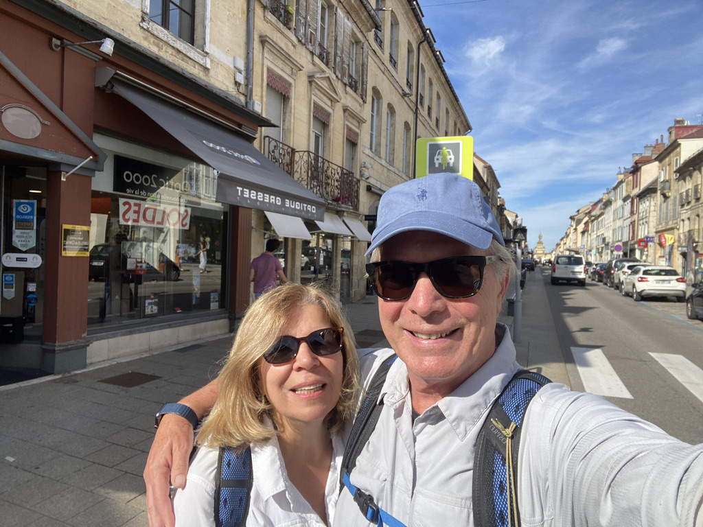 This last week has brought about new vocabulary: “elevation gain” and “comfy hotels.” On the hotel front, I am talking 3 and 4 stars. While we aren’t at the ferns and fountains in the lobby level, a couple had elevators. As a result of these upgrades, I was able to resume my small soap collection, with 108 hotel (term used loosely) reservations, these little gems were to be my souvenirs of our journey. However not all our accommodations offer such luxuries, so I had to suspend this hobby temporarily. I bought one souvenir: a collapsible measuring stick made by the prisoners in Clairvaux.