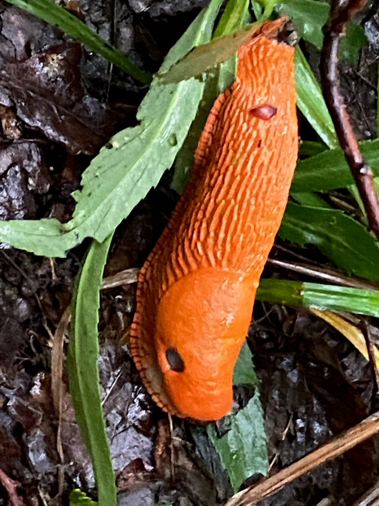 Our digital subscriptions have allowed us to stay current on news and events. We discuss various political and economic topics along with plant and insect identification. There is a neon orange snail, the Limace, you have to see it and mistletoe is a parasitic plant! And then there are our musings and random speculations, for example, what is the statistical probability of a certain bug making it safely across the lane.