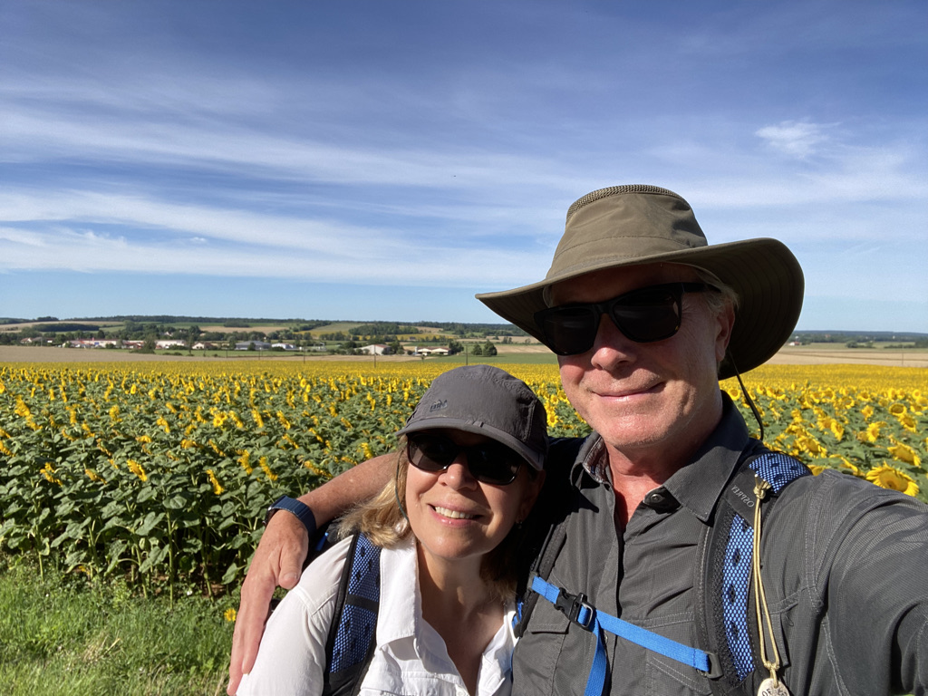 3 days of solid walking through fields of now brown wheat and rape seed but the sunflowers are just coming out and should be in full bloom as we head further south. Every town, regardless of how small, has its church, town hall and memorial to the fallen. The churches are mostly closed with notices such as that Mass will be celebrated in August or September (presumably due to the shortage of priests). I am not sure what purpose the churches serve anymore, France is a thoroughly secular society, but the church steeples remain a great navigational aid.