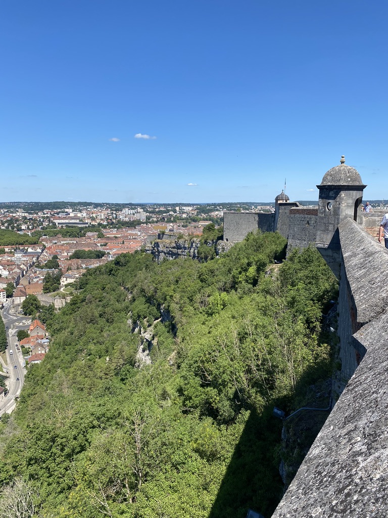 Up and down through wooded areas for the first half and then mostly suburbs and modern industrial parks until we reached city center. What a surprise! A stunningly beautiful old city of medieval and 17th -18th century buildings framed in a loop of the Doubs River with the Jura mountains in the background. It was a short walk so we arrive early enough for a late lunch on the banks of the river. A nice plate of carbonara for me and Napoletana for Paula. We taste an Italian influence in the food. We will rest here 2 nights to soak it in and do laundry