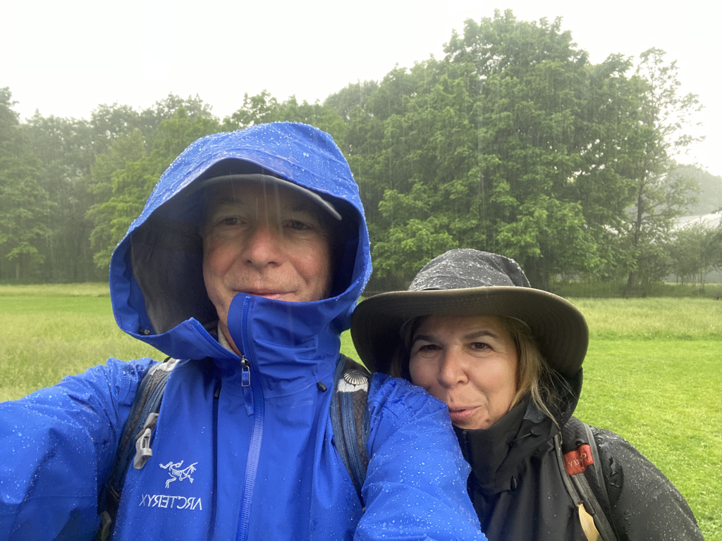 Now it is time to wrap my feet, all in the hope of avoiding the inevitable blister. Edward’s feet look like hands, hands that play piano, mine look like they have gone a couple of rounds with Sonny Liston. But I digress. Now the feet are ready for the day. Wardrobe selection is easy, the selection is limited to 3 pants and 3 shirts. Backpacks are loaded with water, rain gear and lunch – we check the maps, the GPS and our intuition and off we go.