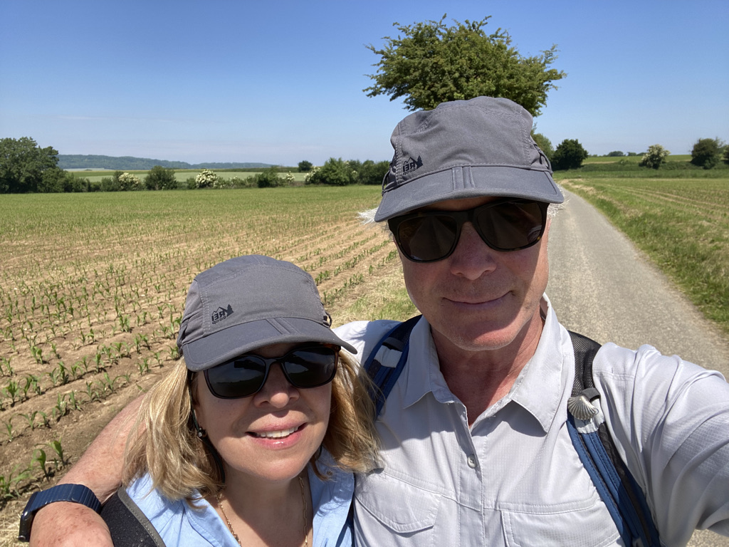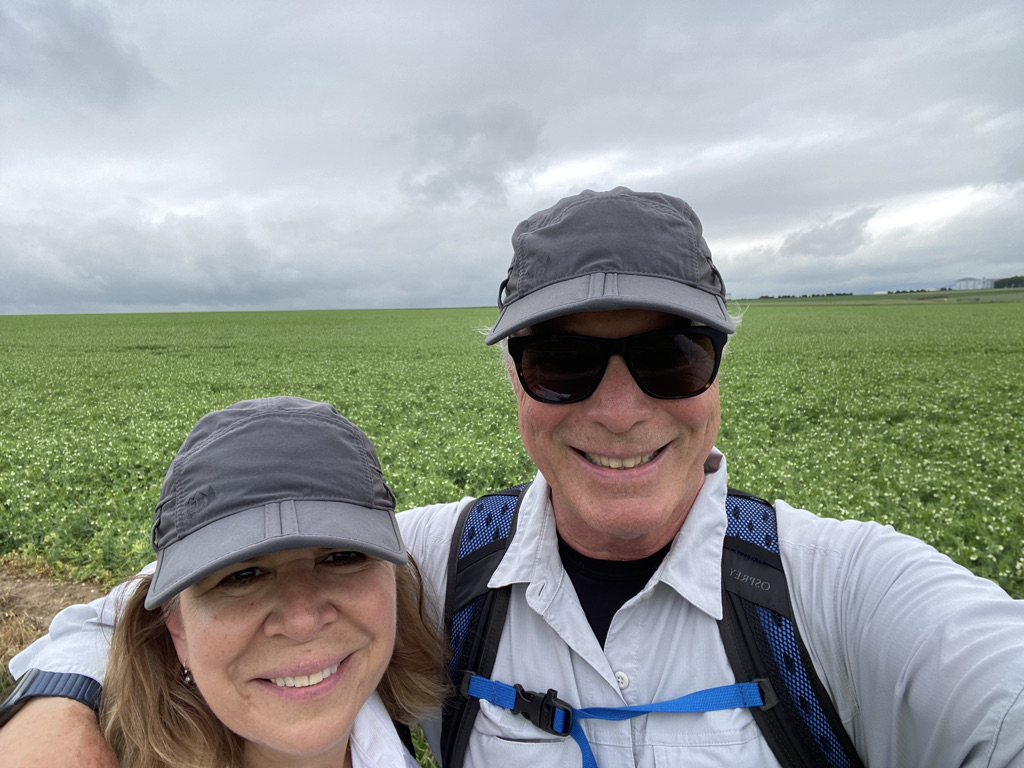 We wake up early, which is a direct correlation to the fact that we go to bed early, think sun is still up! Like good laborers we shower at the end of the day and rinse out clothing we feel will be dry in the morning. This nightly routine allows maximum time in the morning for applying many ointments and support materials. Sunscreen is extremely important as I try not to resemble Magda in Something About Mary, my walking stick hand already has a mahogany patina. As we move south, we have started to encounter very warm weather.