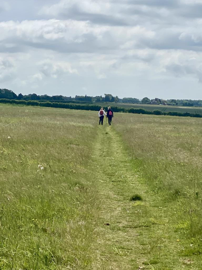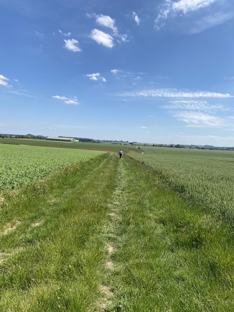 We think of ideal hiking adventures as walking in pristine nature. We yearn for a sense of exploration, discovery, and perhaps even mystical union with mother earth. Remote canyons, virgin forests, ground never touched by human footprint. This is not that. Every inch of land is curated by human hand, not an inch is left unattended. Even the old Roman path we walk on, built by Caesar’s legions as they marched to conquer Britain, is carefully maintained to serve thru walkers, as we are called. But in these vast fields of wheat and corn, grape seed and sorghum each stalk and stem are barely a month old, seen by only a handful of walkers and an occasional rabbit. Individually unique, in the aggregate shape a pristine landscape.
