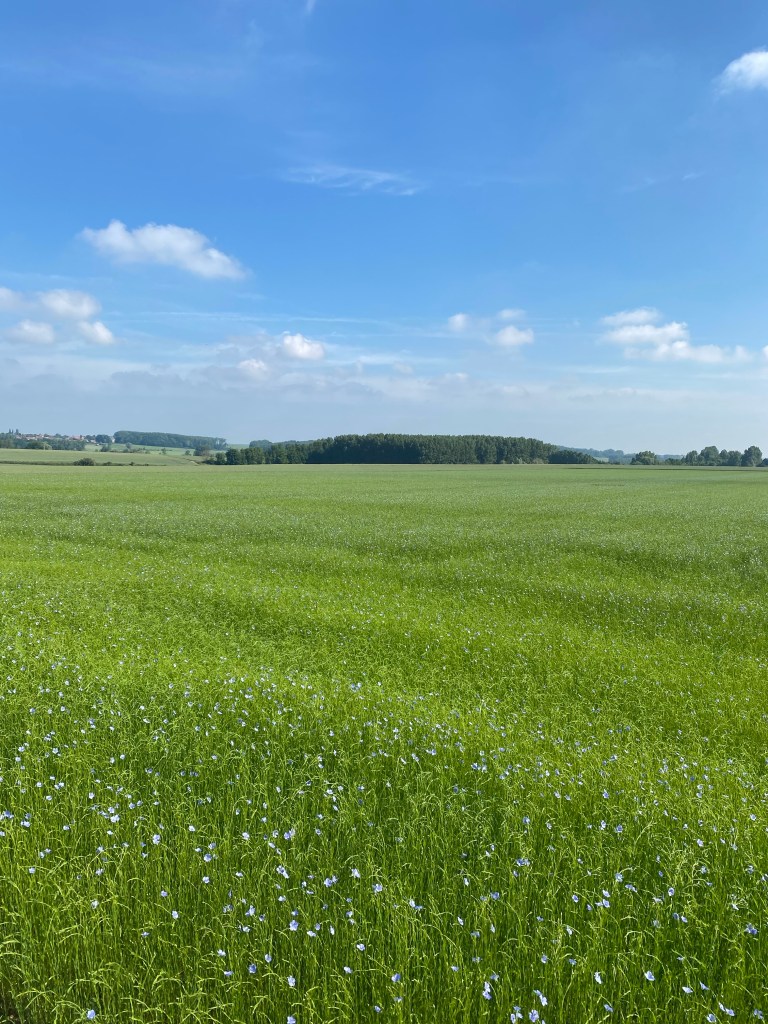 This part of the country produces 80% of the world’s linen. The plants bloom a dark blue flower that is just starting to appear