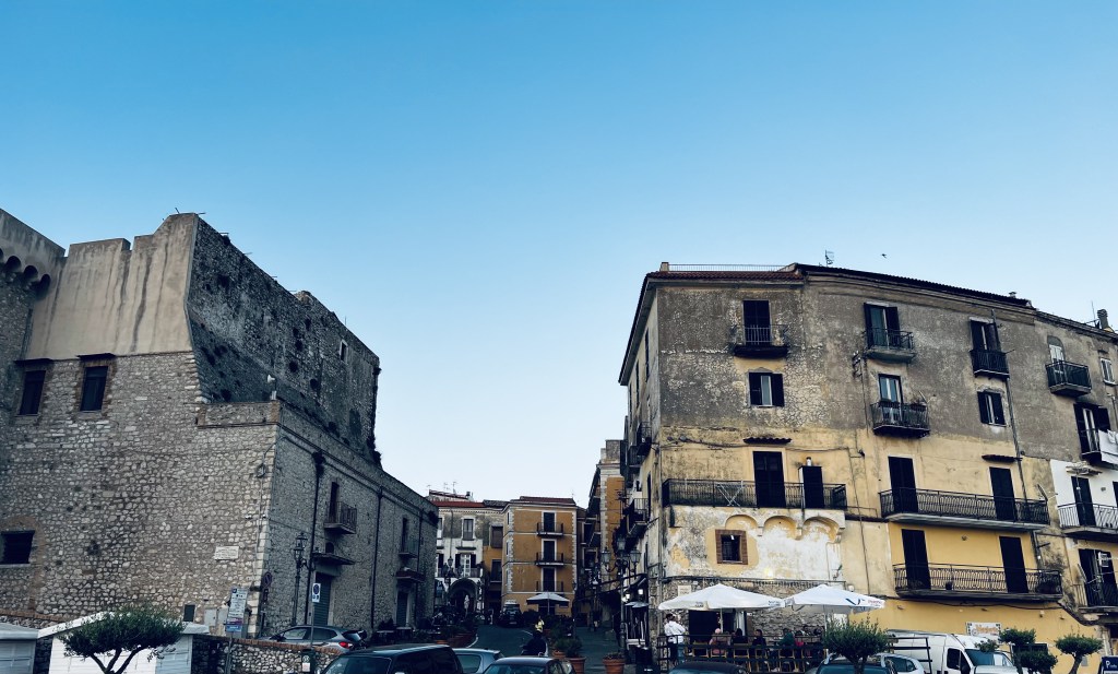 Alife is an ancient town, originally inhabited by the Samnites before Romans conquered it in the 4th century BCE. It’s on the flat of the land, not perched on a hill like almost all the other towns we travel through. The accommodations in Alife were on Viale Dei Caduti Di Lavoro (Street of the People Who Died Working). A name full of social irony. Our hostess for the evening, an enterprising lady named Antonella, who spoke in rapid fire Neapolitan with hand gestures to match, energetically slicing and piercing the air, while explaining the nuances of our apartment, did not care for the name.