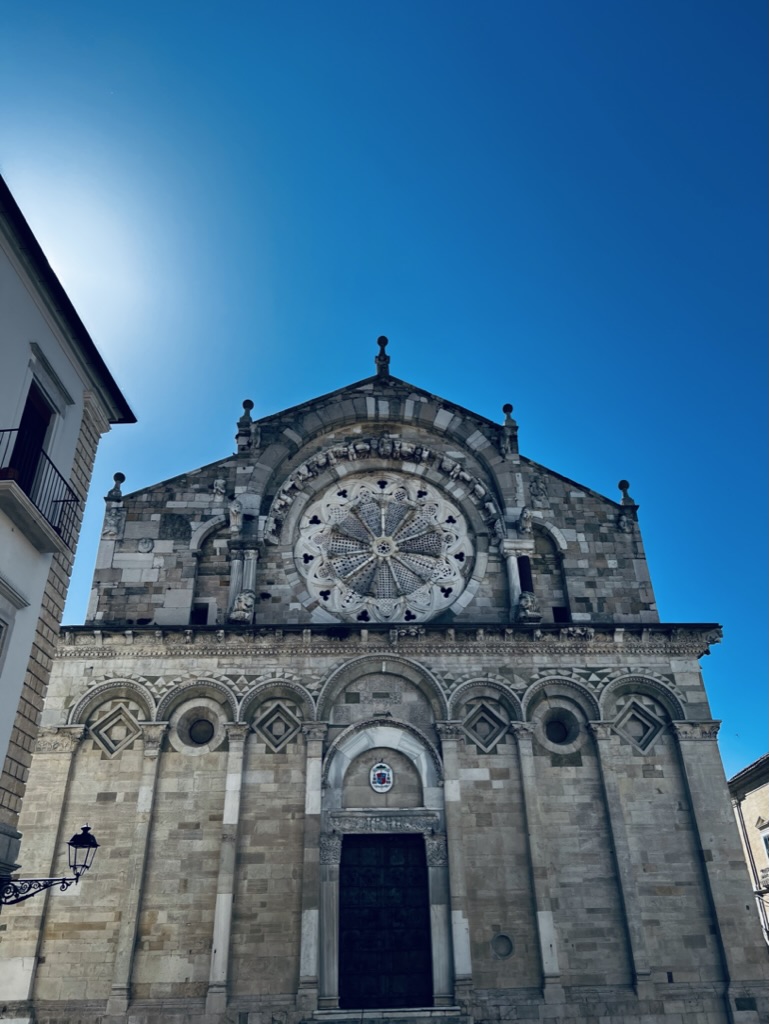 It all worked out even better than expected as we had a rest day in Troia, which we needed. We walked around, visited the imposing 11th century cathedral with Arab façade elements, walked around some more, read, and wrote at a café, had a delicious lunch and we crossed paths with other pilgrims for the first time. Martin, who is German but has lived in Pisa for 40 years, is walking from Pisa to Athens, his destination is Lesbos where he has a house. Today he covered 17 km in 3 hours in the morning and plans another 15 km in the afternoon. In sandals. We met a Brazilian couple, who are walking the Via Francigena, he by foot, she in the chase car, from Lucca to Brindisi. A global community.