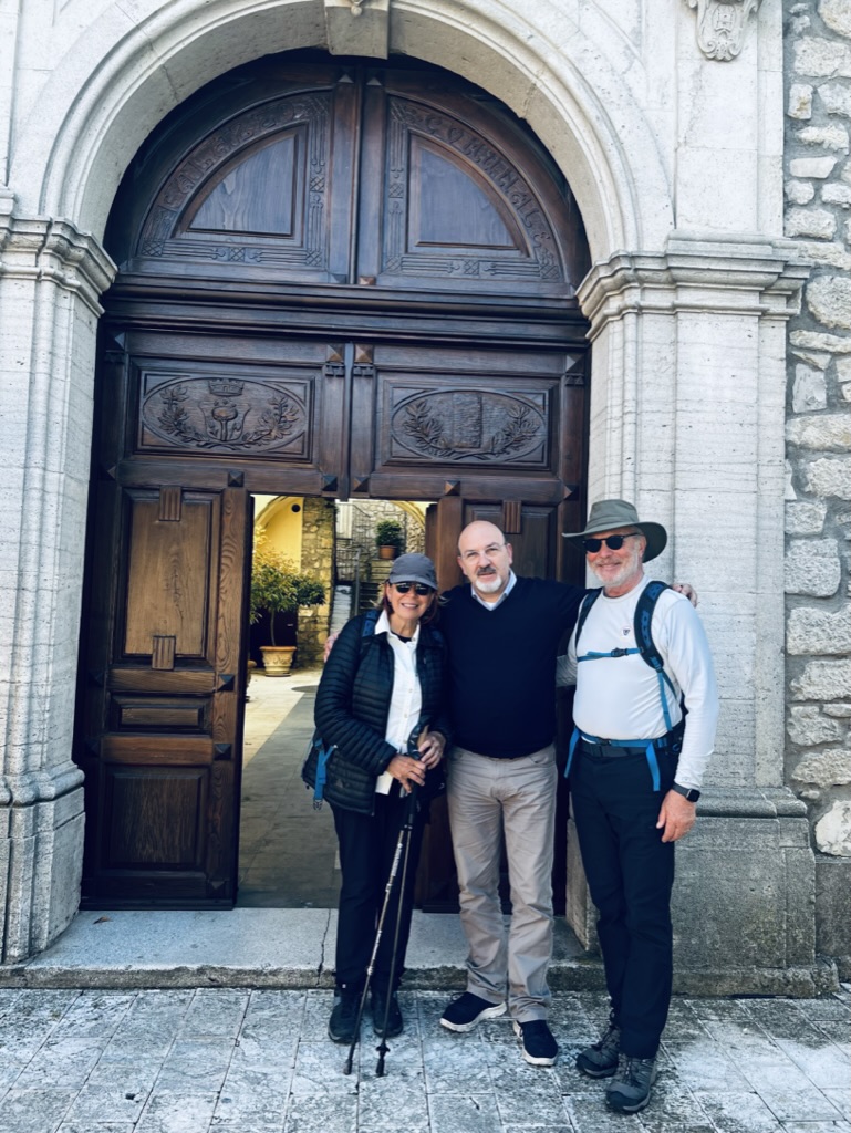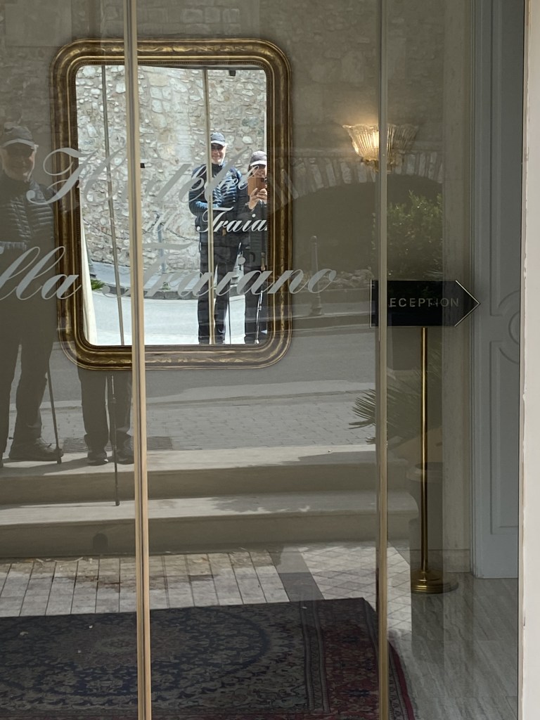 On the way out of Vitulano, we crossed paths with a group of “Herb Tourists” hiking the mountainside for wild herbs with medicinal qualities. Herb Tourism. The troop leader is the cousin of the owner of the B&B where we spent the night and the uncle of the guy transferring our luggage. When I told him we are Americans, he exclaimed “Ahh, Americani, I have a cousin in Naples Florida.” Umberto, the owner of the restaurant where we had dinner last night, was in Kennebunkport, Maine last year. “Why Kennebunkport?” I asked. “I have a cousin who lives there.” We are part of a global community.