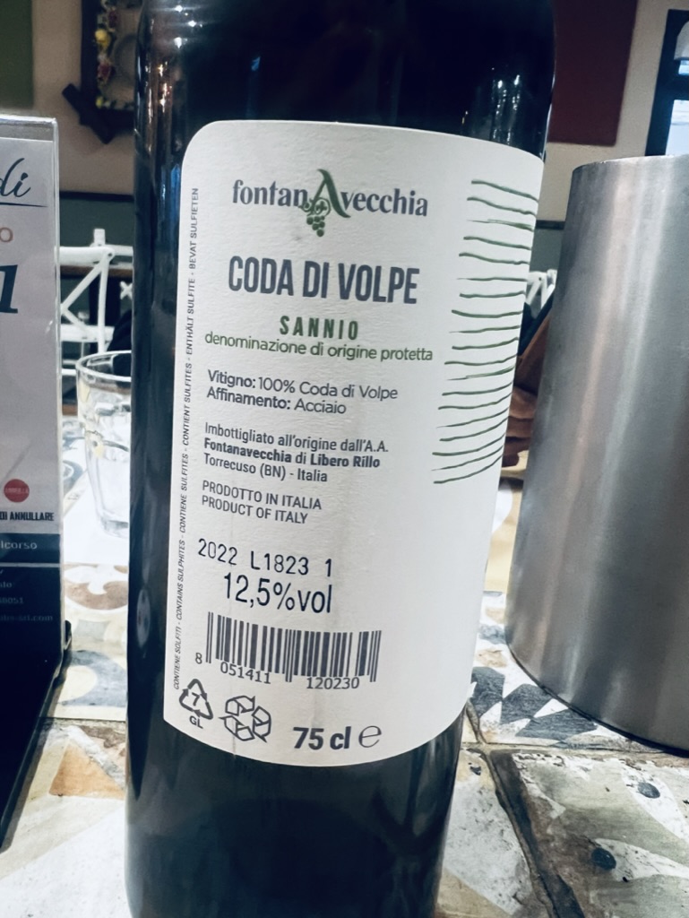 Here is how fast we travel. We reached Telese Terme in time for lunch and a “piede franco” wine, which is to say made from original roots not the transplants from the US when the phylloxera devastated vines in Europe. It was quite good. Here it is.