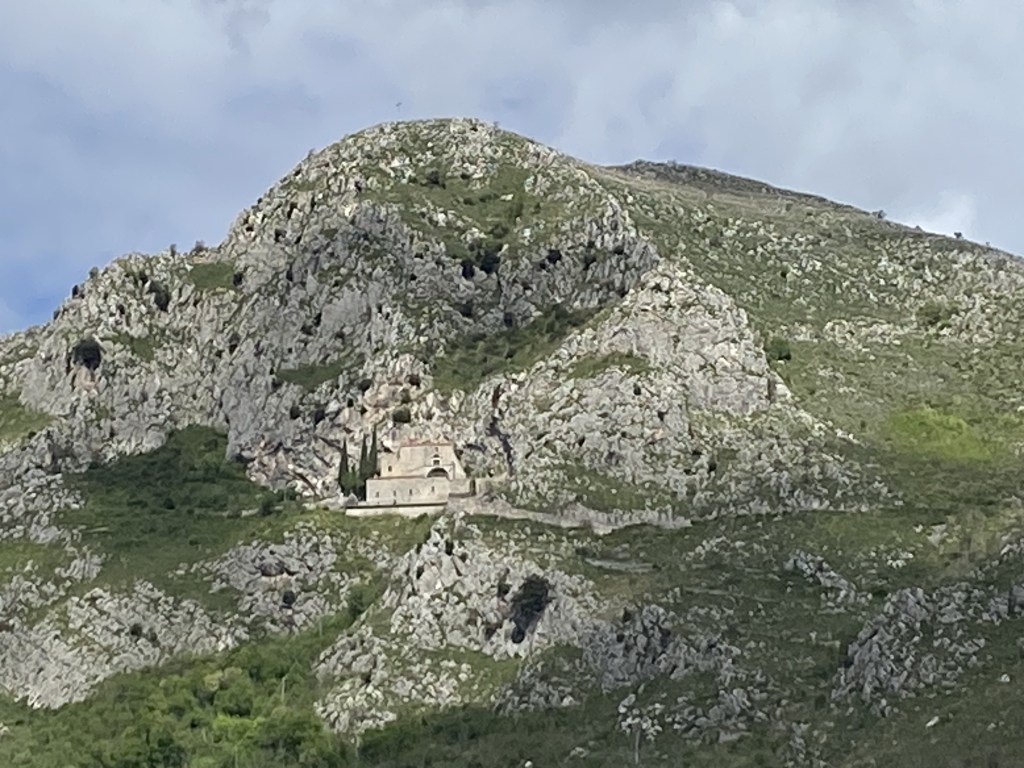 Next time someone quotes “May the road come up to meet you” I will explain they obviously have never been on a 45-degree uphill road for 8 km, walking into a headwind in the driving rain. All I wanted was for that road to back off. But we made it to Vitulano with a mixture of elation and wonder at the spectacular scenery. It was worth it.