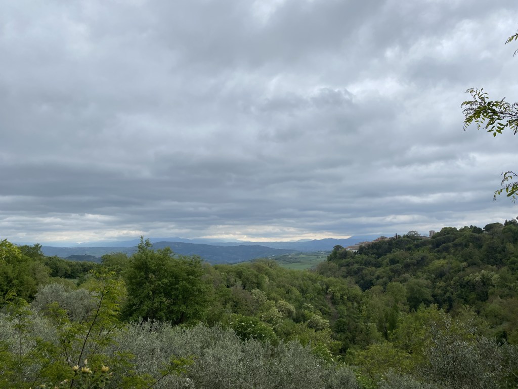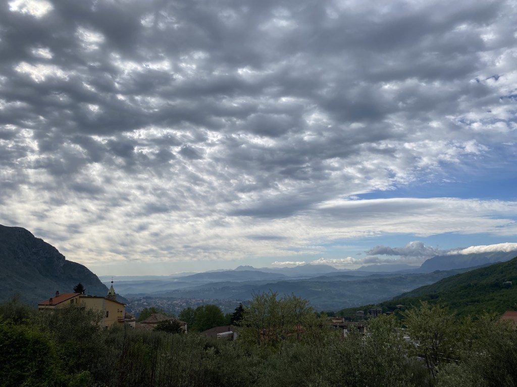 Faicchio is at about 1000 m altitude, tucked into the foothills of the Apennines that loom over the town on all sides. As the day wore on gathering clouds and claps of thunder indicated a coming storm that broke loose just as we entered our room for the night. Good timing.