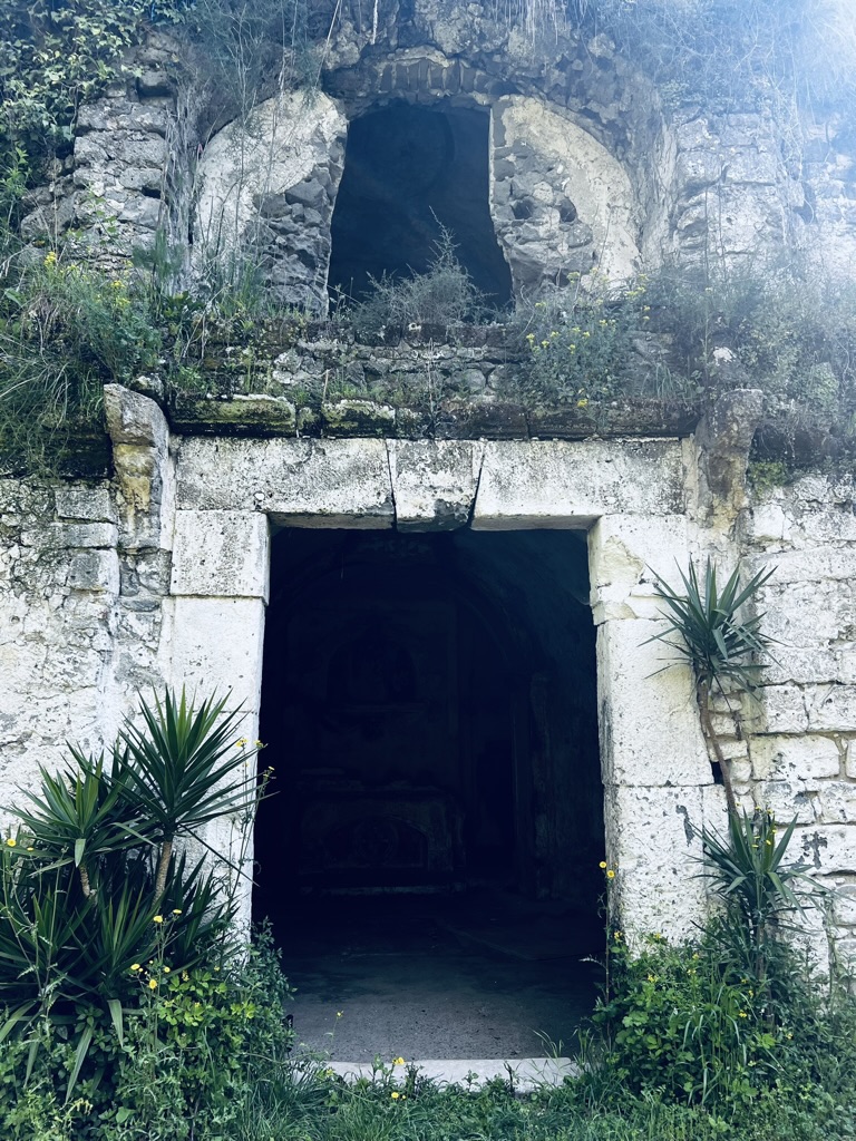 Walking along the Appia Antica we pass a 1st century Roman bridge which other than being overgrown with greenery seems to be in fine working condition. We pass ruins from various eras that testify to the long and tumultuous history of this area, invaded by everyone who had pretensions of Roman empire building: Lombards, Byzantines, Normans, Popes, France, Spain, the Holy Roman Emperors, Napoleon, Germans, and on and on.