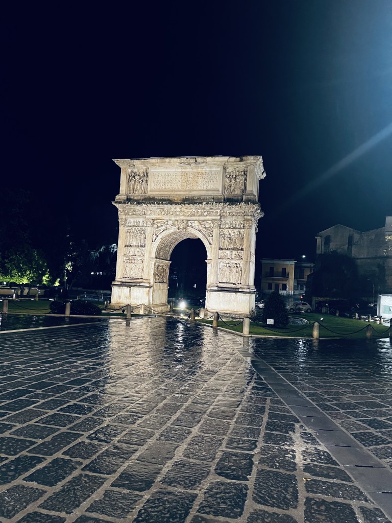 Before leaving Benevento, we revisited the Arch of Trajan, which was constructed at the entrance to the city on the Via Appia in the 1st century CE to celebrate Trajan’s victory over Dacia, a territory that included parts of present-day Ukraine. It is a stunning piece of antiquity.