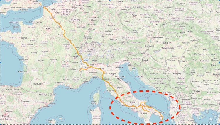 This first week has been a baptism by fire. It started on a lavish note: the bathtub in our first hotel on Piazza Navona, a red-lacquered monument in the center of our Aphrodite sweet, would have been suitable to baptize a small congregation, and the complementary towels would have made Christo proud. Perhaps I was cavalier about the six-week journey at the start, but reality sunk in quickly following a series of 26+ km phases, walking more 8.5 hours each day, ended in our small rooms with us moving mechanically around like robots in a robot repair shop, bumping into the walls and each other.
