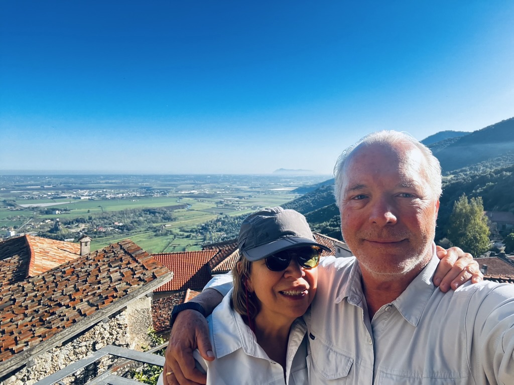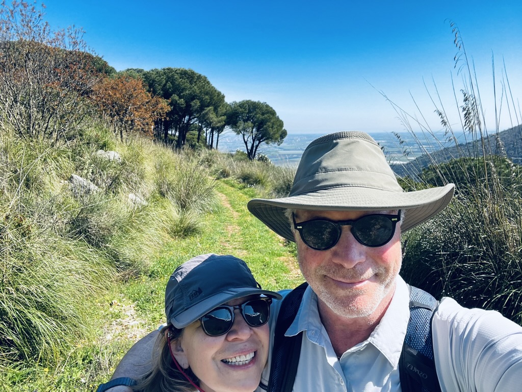 A new feature of this weekly summary will highlight individuals who “made our week.” We want to recognize Corrado and Lidia who provided luggage transfers for 4 days. Aside from warm generosity and care, they gave us the carved wooden figure of a Francigena Pilgrim. Corrado, it turns out, is an excellent carpenter. We want to recognize Vincenzo who appeared out of the mist as evening fell while we were hitchhiking with the genial “Where do you want to go.”