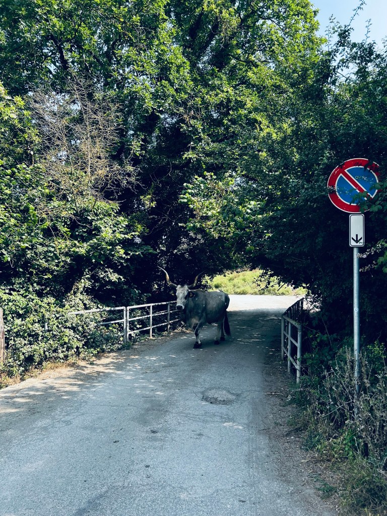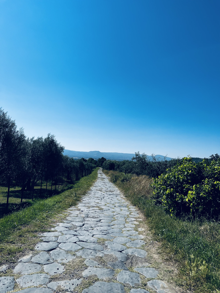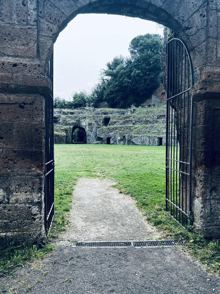 A very pleasant walk today through hazelnut orchards and along wooded paths criss-crossing a gurgling stream with some elevation gain at first and then gently undulating. We are struck by the random Roman ruins we pass, remnants of aqueducts and a fully preserved 2nd century amphitheatre cut out of tufa rock that in any other setting would be a national treasure attracting tourists from the four corners of the earth.