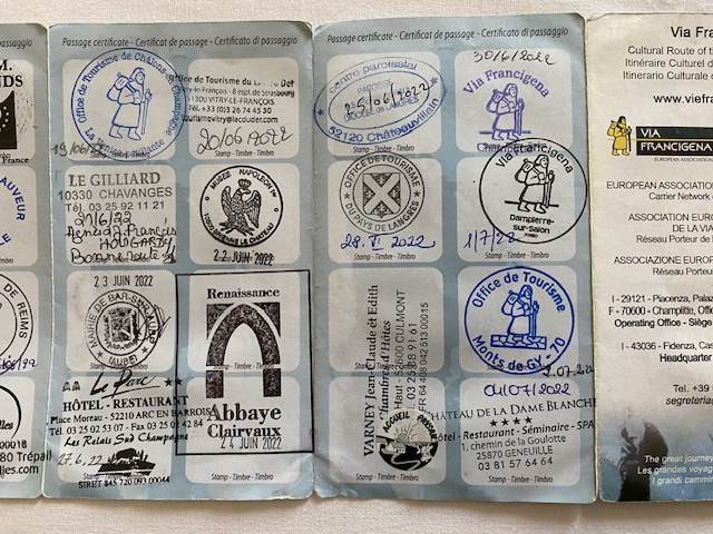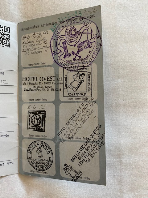 A fellow traveler, whom we call Pavia because that is where his journey to Rome started (he calls us Canterbury), related that another pilgrim, an American woman whom we had seen on occasion, had to halt her walk because her feet gave out. All sorts of images crossed our minds but we hope she recovers soon and can resume her walk.