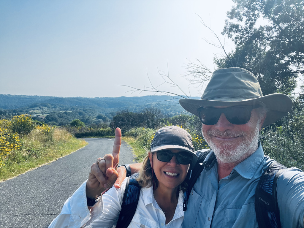 Walking up various narrow gulches we resemble drivers taking sobriety tests, one foot in front of the other, the space too narrow for a normal step. Our walking communication takes on a version of 3 stages. The day starts with a general discussion of events and observations. Then as the Kms add up, we turn to light banter, that’s when only one person gets the joke. Finally with elevation gains, stone silence. Cue the earpods, our walking aids. We listened to 3 books: Bloodlands, by Tim Snyder, The Wager by David Grann and My Father’s House by Joseph O’Connor, and various podcasts. But music works best for me. There isn’t a hill that Bill Withers can’t get me over, and when I need an encouraging playlist I turn to “Sad Songs of the 70’s” or “Bella Ciao.”