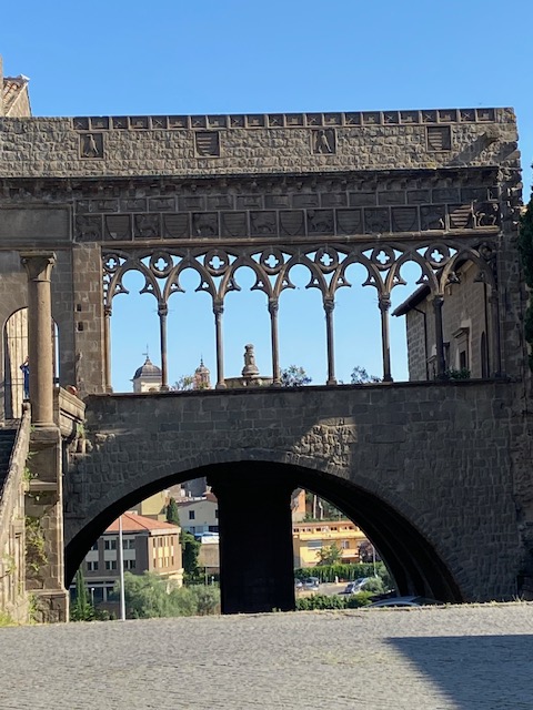 Before leaving Viterbo we walked through the older, “historical”, neighborhood, and glad we did. Much of it sits on top of large rectangular Etruscan boulders and houses 11th and 12th century structures as well as the House of Popes where several 13th century Popes lived and which somehow survived the allied bombing in 1944. The Cathedral of St Lawrence was not so lucky.
