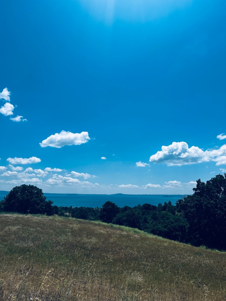 Relatively easy day walking the rim of Lago Bolsena through a mostly shaded national park well provisioned with water and park benches, the essentials in life. Other than the steep climb to the center of Montefiascone moderate inclines, undulating hills enlivened by panoramic views of Lago Bolsena sparkling below us.