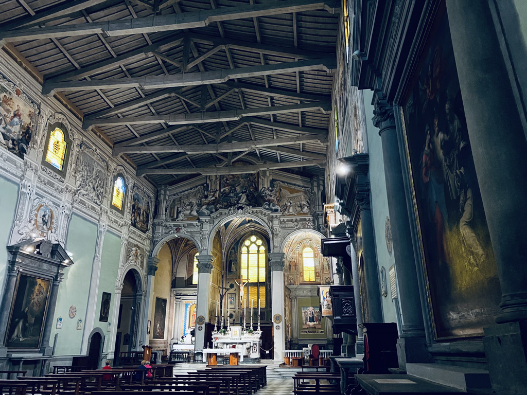 The Duomo, a 12th Century structure, betrays alarmingly deceitful baroque trompe l’oeil. Next to one of the side altars stands a dignified testament to the 55 Italians who were killed under American artillery while taking refuge in the church where they thought they would be safe.