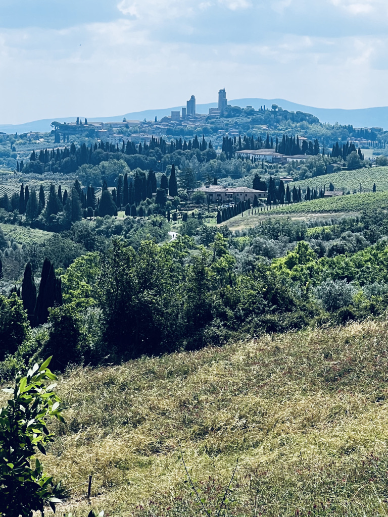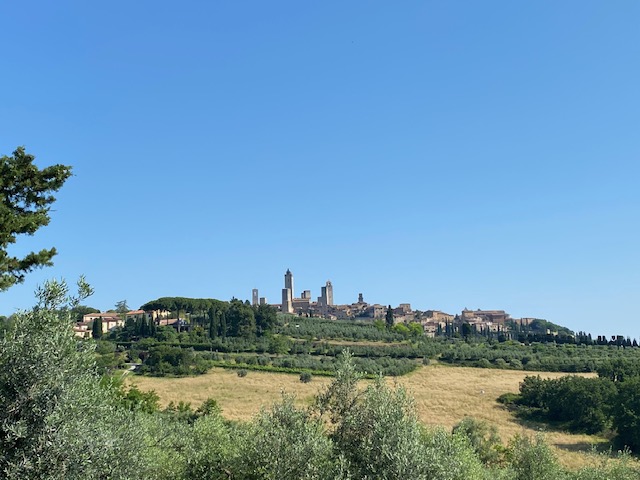We are in Chiantishire, greeted at every turn by “Bion Journo” or “Bionah Sayrah”. San Gemignano was a shock at first, throngs of tourists fighting over their slice of pizza “What’ s on the Putinaceca” and “Can I have that without the anchovies.” But as evening came and the town empties out we could appreciate its beauty and grace. How Italians are able to preserve these Middle Aged gems and still provide all the conveniences and curations that cater to the tastes of modern visitors is a wonder. And not just one, but one after the other and each unique and impressive in its own way. San Gemignano, known for its towers, is a vibrant and exciting town that attracts thousands every day. A really charming and richly attired. We liked it.