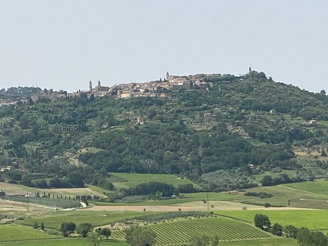 Tuscany offers endless stunning views and chiming church bells marking the passage of time and our progress. The new challenges are the serial ascents to hill top towns, climbing 400 or 500 feet 4 or 5 times a day. In fact I have observed people from my car walking on these toads wondering why are they doing that? Are they crazy?