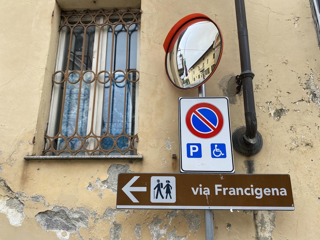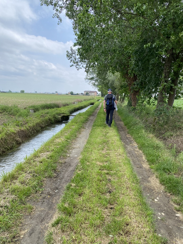 We are in the Po valley, the pasta and rice basket of Italy, walking beside green rice paddies and durum wheat fields. The Via Francigena in Italy has a completely different vibe than the one we walked in France. The signage is fantastic, the paths well maintained complete with rest areas for pilgrims every couple of kilometers, and lots of cafes in the small villages along the way. It feels like we were invited to come for a walk and, having accepted, we are welcome guests. And of course, the food is delicious.